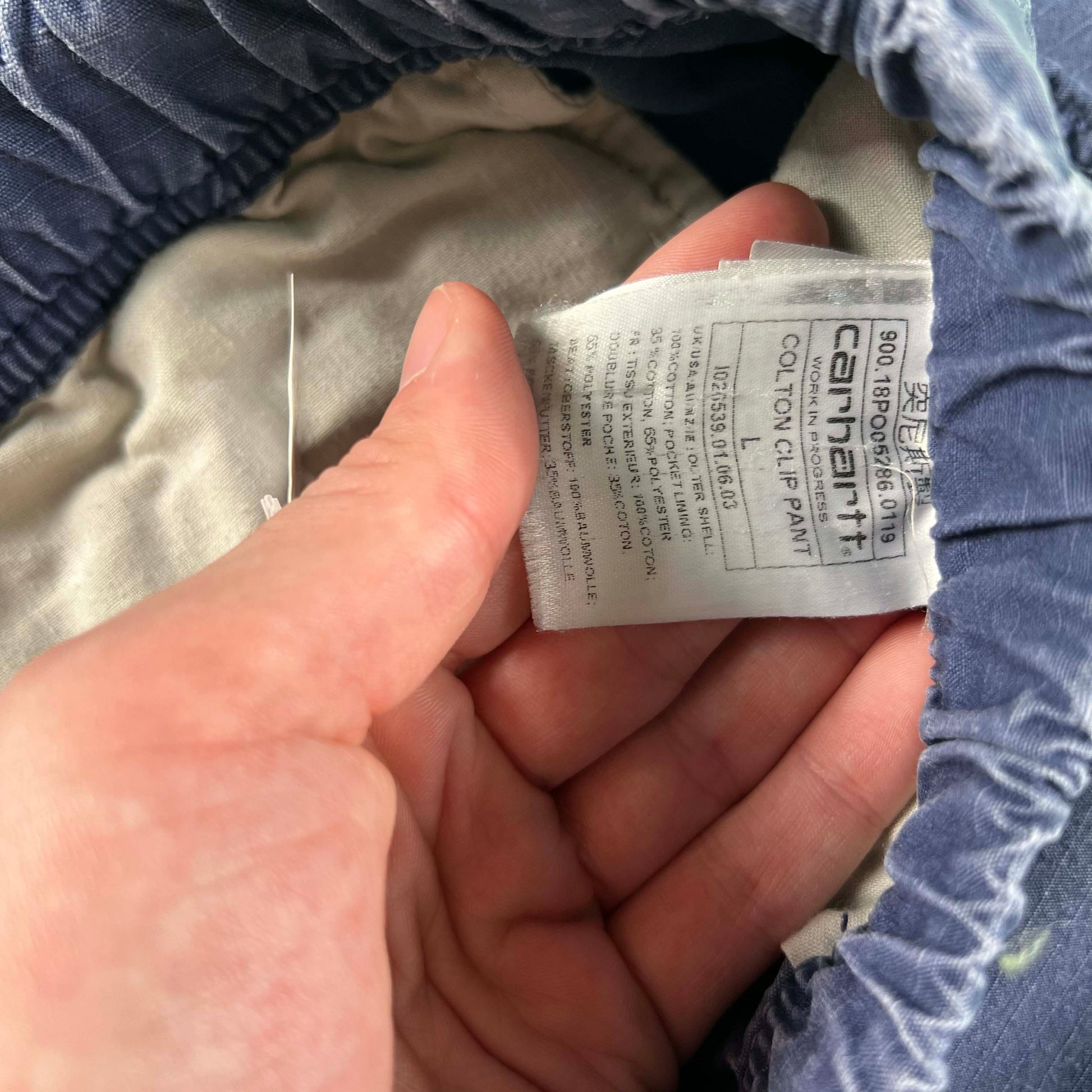 Carhartt Cotton Clip Pants. both tagged a size large! These are basically the Carhartt version of Gramicci EZ pants. here we have a faded moss green and french blue. The blue pair has a waist that stretches more than the green pair but both are adjustable
