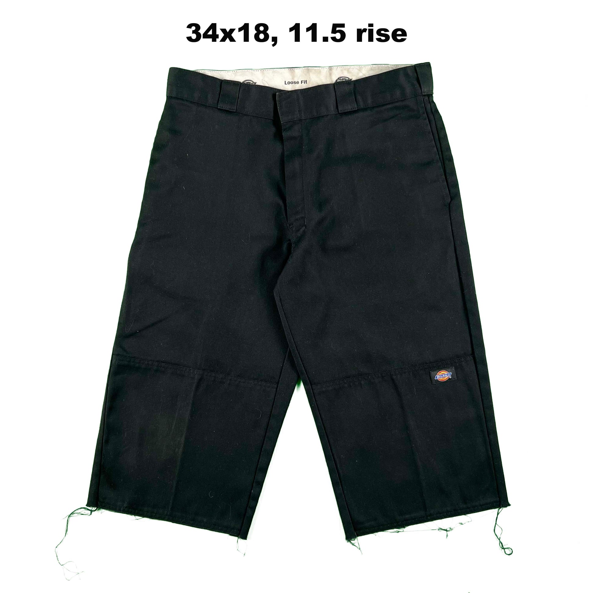 LOVE THESE!! I have the same pair and I wear 5 times a week OFTEN lol. great capris/long shorts with a raw hem and fraying, black color. various fading and wear on each!! some have paint splatter!