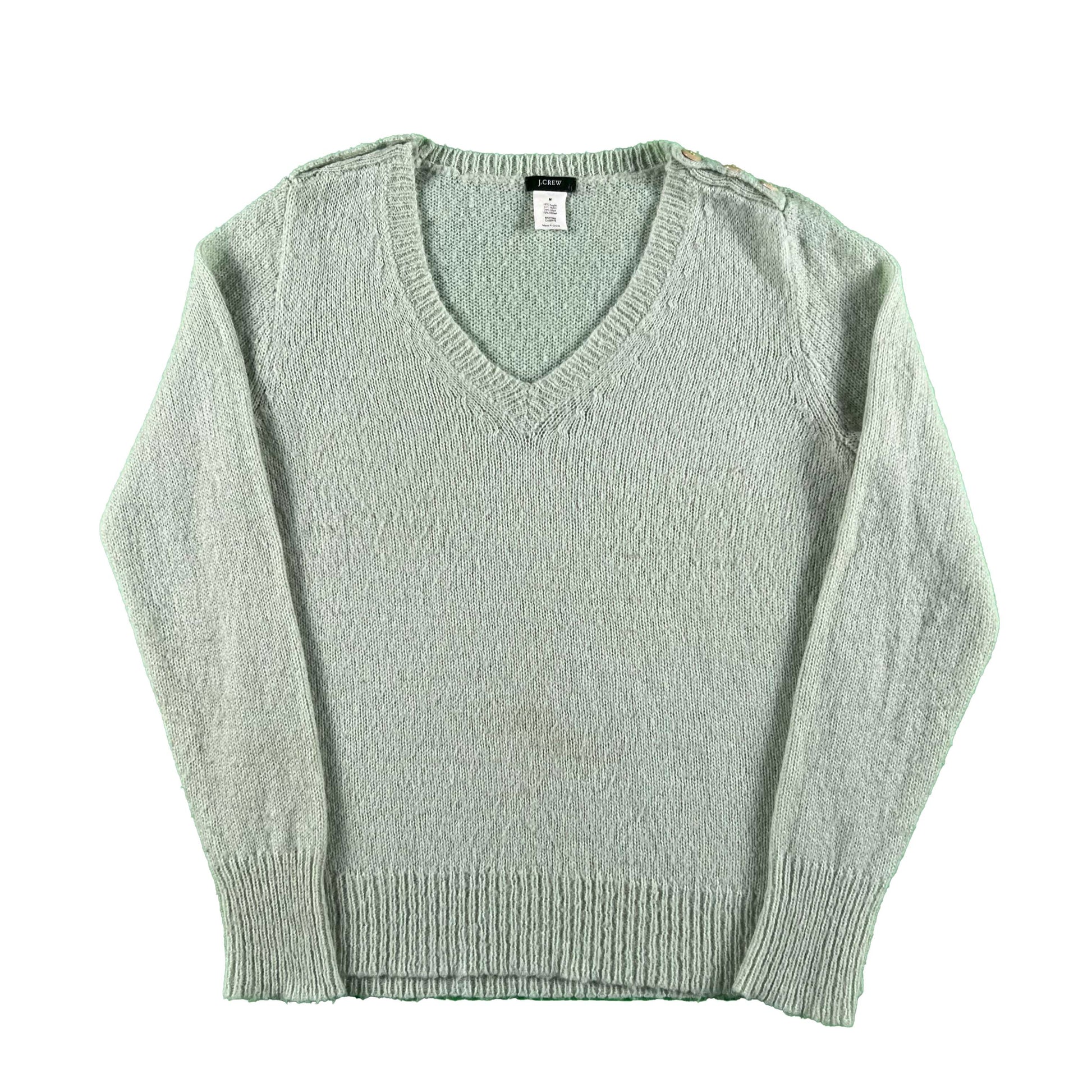 awesome acrylic, nylon, mohair, and wool blend sweater from J.Crew!! super cute with the buttons on the shoulders. slight shag look to it and minor wear