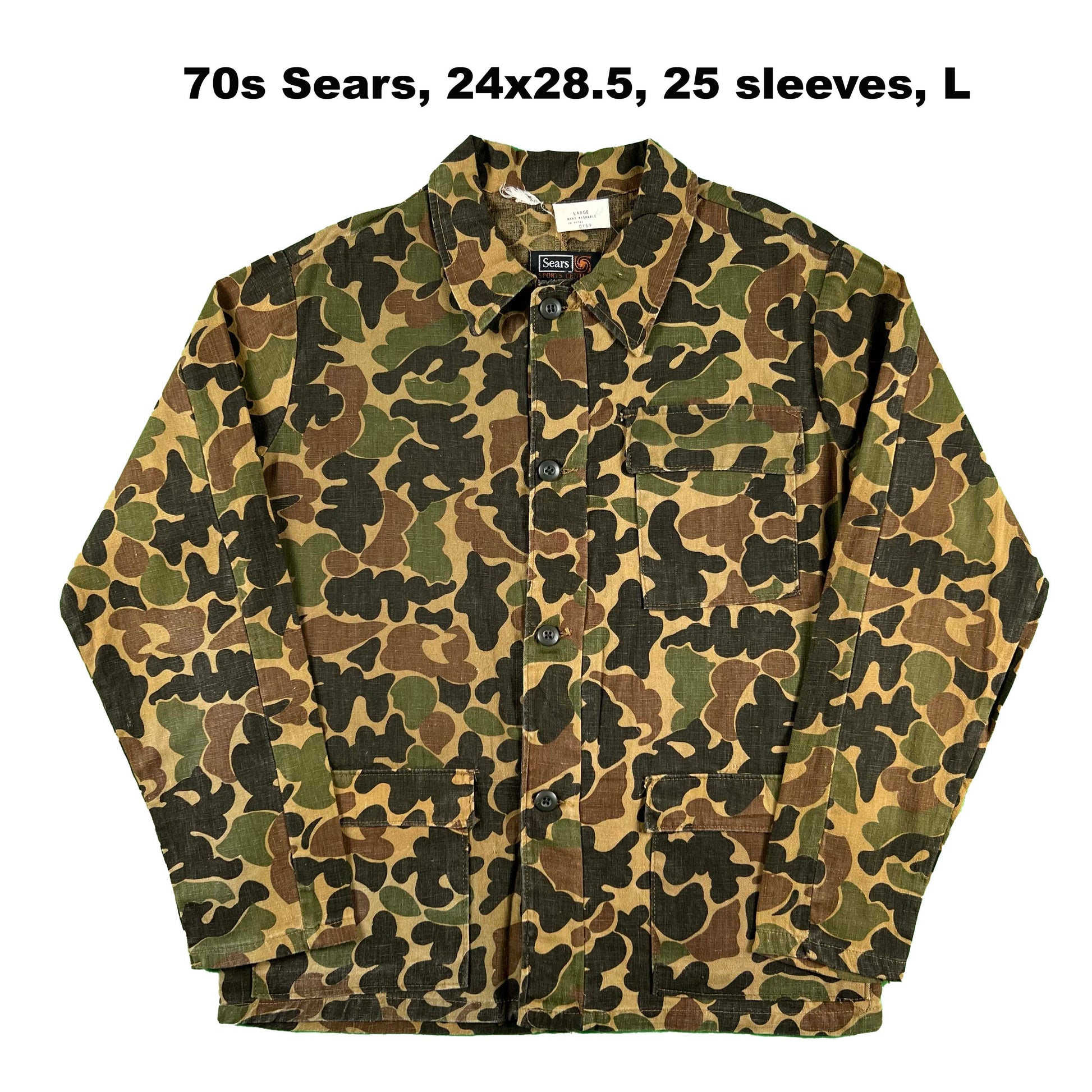 variously faded and worn blank 1970s-2000s duck camouflage button up utility shirts in your size! You will receive one shirt in your selected size :)