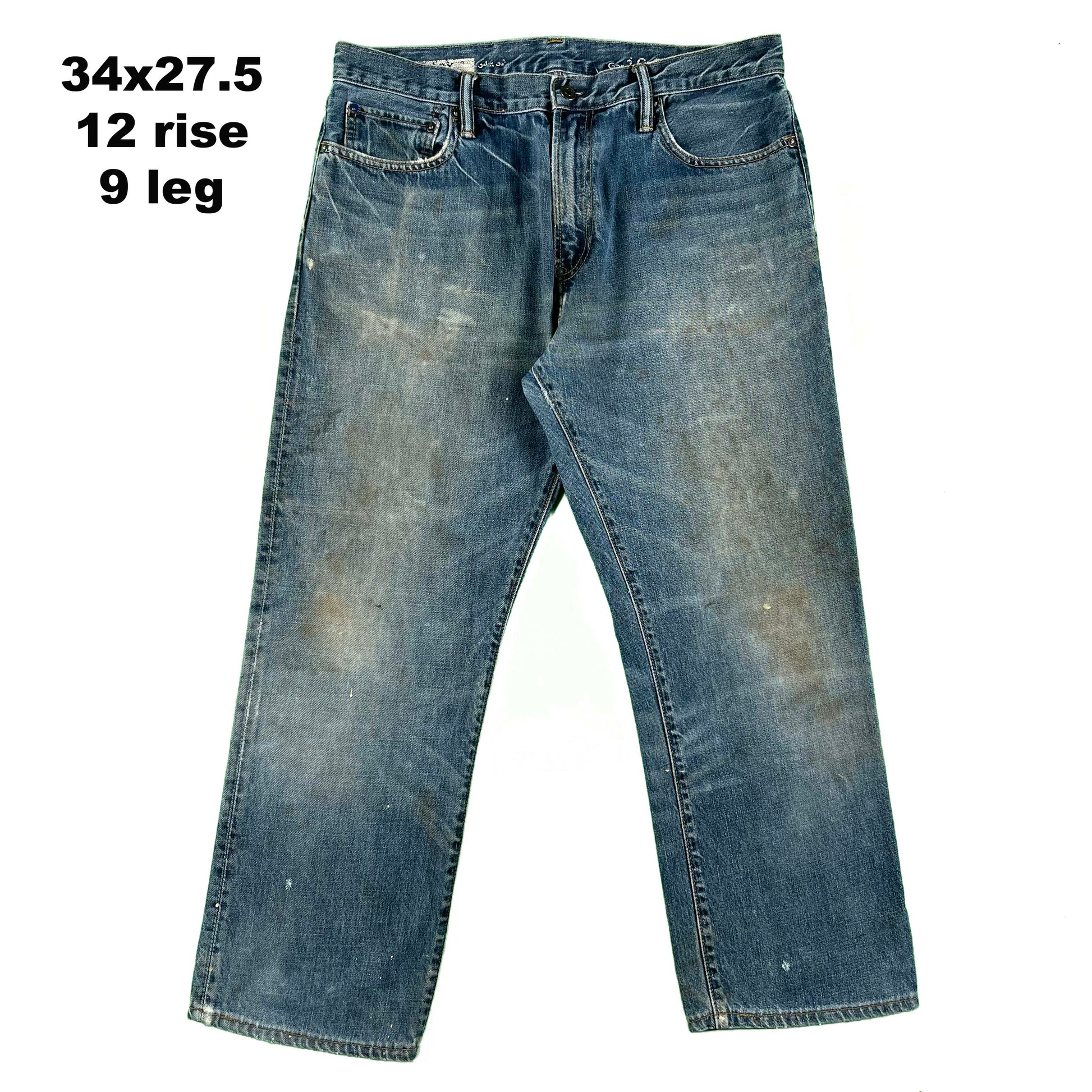 gorgeous variously faded Gap 'Easy Fit' denim with a slightly baggy/mom jean cut fit. Mainly 90s to 2000s pairs. variety of washes and paint markings, if you size up these will be extra baggy, especially on the pairs with wider leg openings!!