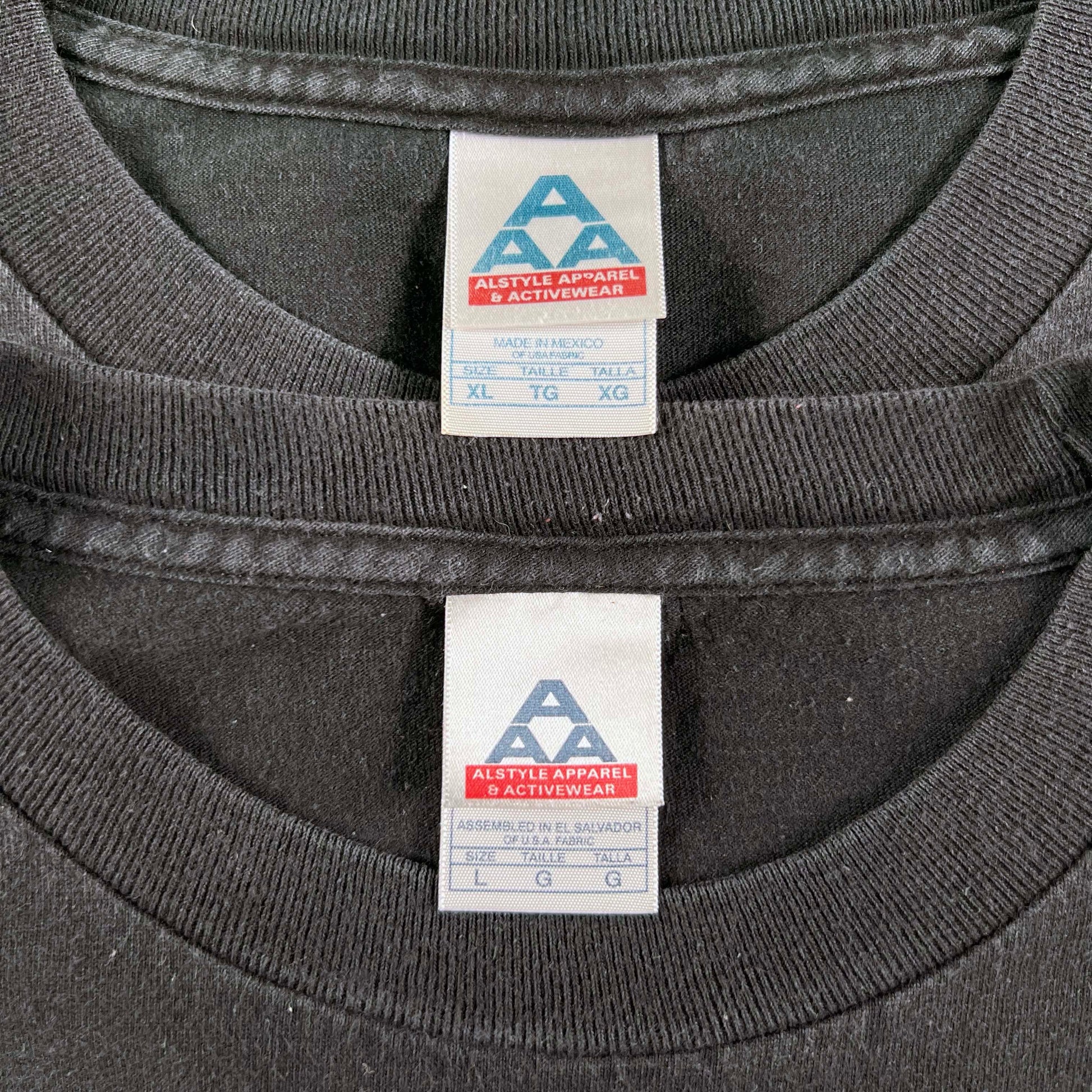 various vintage 1990s and 2000s Alstyle Apparel & Activewear(AAA) brand t-shirts! select the shirt you would like to receive! one of my all time favorite blanks!! they are super cozy 100% cotton blanks that are great for everyday wear, these are great tees for a great price :) I have a lots in the personal collection because they tend be really nicely worn in faded black tees!